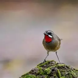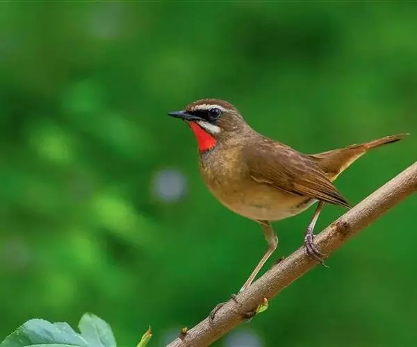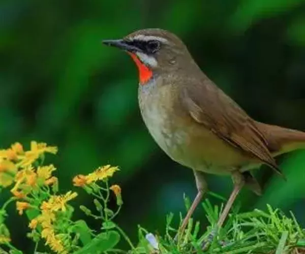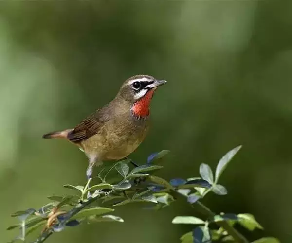 红点颏(学名:Calliope calliope):是鸟纲、鸫科的鸣禽。又名西伯利亚歌鸲。体长14-17厘米,体重16-27克。雄鸟头部、上体主要为橄榄褐色。眉纹白色。颏部、喉部红色,周围有黑色狭纹。胸部灰色,腹部白色。雌鸟颏部、喉部不呈赤红色,而为白色。虹膜褐色。嘴暗褐色。脚角色。