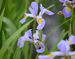 双色野鸢尾为多年生草本植物,叶子呈剑状淡绿色。…