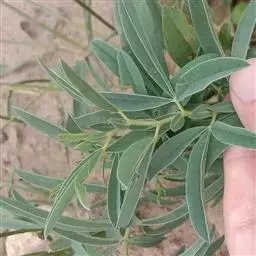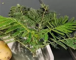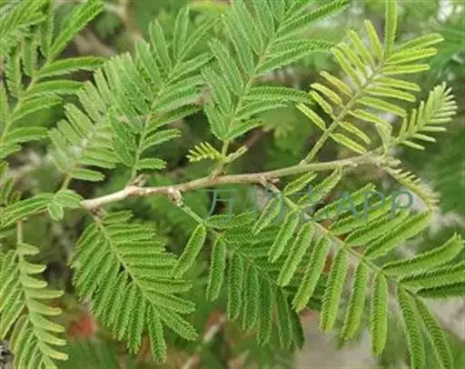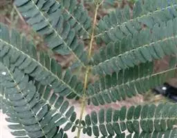 二回羽状复叶长2-7厘米,叶轴糟状,被灰白色柔毛,有腺体;羽片4-8对,长1.5-3.5厘米;小叶通常10-20对,线状长圆形,长2-6毫米,宽1-1.5毫米,无毛。