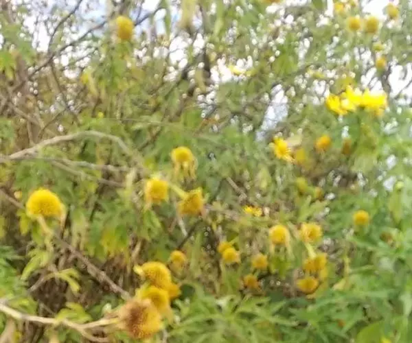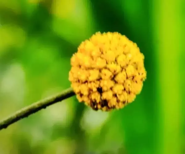 头状花序1或2-3个簇生于叶腋,直径1-1.5厘米;总花梗被毛,长1-3厘米,苞片位于总花梗的顶端或近顶部;花黄色,有香味;花萼长1.5毫米,5齿裂;花瓣连合呈管状,长约2.5毫米,5齿裂;雄蕊长约为花冠的2倍;子房圆柱状,被微柔毛。