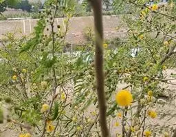 金合欢(学名:Acacia farnesiana (Linn.) Willd.),别名:鸭皂树、刺球花、消息树等;灌木或小乔木,树皮粗糙,褐色,多分枝,小枝常呈“之”字形弯曲,有小皮孔。托叶针刺状,生于小枝上的较短。二回羽状复叶,叶轴糟状,被灰白色柔毛,羽片4-8对。花黄色,有香味;子房圆柱状,被微柔毛。荚果膨胀,近圆柱状,褐色,无毛,劲直或弯曲;种子多颗,褐色,卵形,花期3-6月;果期7-11月。