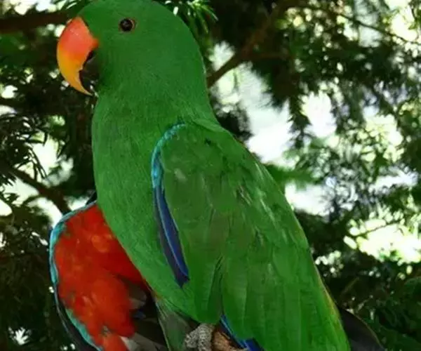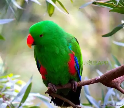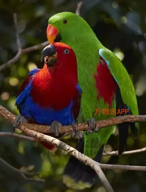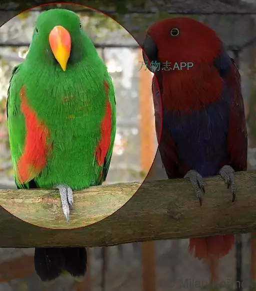 折衷鹦鹉(学名:Eclectus roratus),又名红胁绿鹦鹉,它的名称“折衷”名称是由“Eclectic”一字而来,意思是折衷的、公母鸟表现出截然不同羽色的意思。这种鹦鹉是所有鹦鹉中两性外表差异最明显的种类,雌鸟鲜红色的羽色与雄鸟亮眼的绿色形成强烈对比。是典型的攀禽,鸟喙强劲有力,喙钩曲,上颌具有可活动关节,喙基部具有腊膜。肌肉质舌厚。脚短,强大,对趾型,两趾向前两趾向后,适合抓握和攀援生活。羽毛。晚成雏。主要栖息于热带雨林和低地森林当中。食物主要是种子、浆果、水果、坚果、昆虫以及其幼虫等,通常成对活动,繁殖期聚小群,属于留鸟。主要分布于印度尼西亚、新几内亚、澳大利亚等地区。