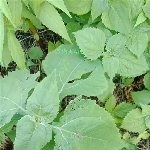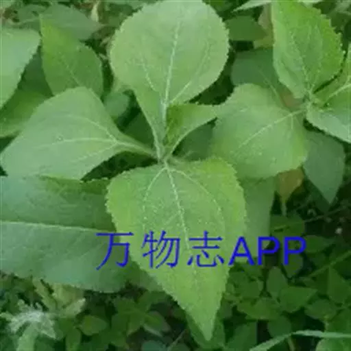 2、腺梗豨莶,本品枝上部被长柔毛和紫褐色腺点;叶圆形或卵形,边缘有不规则小锯齿。