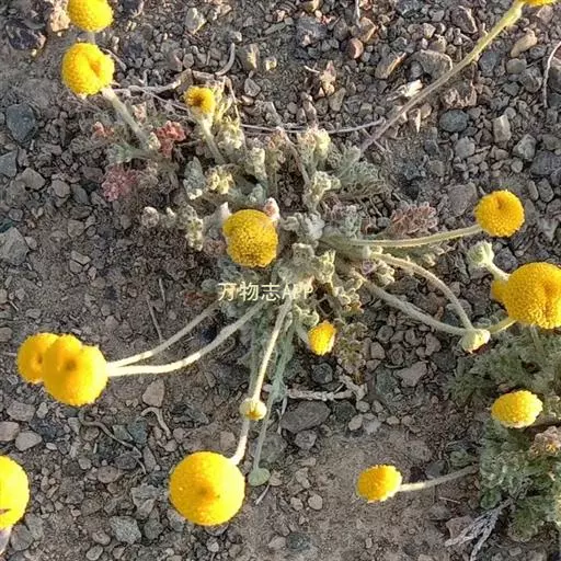 两年生或多年生草本,叶灰绿色,被白色棉毛至几无毛,叶片长圆形或卵形,长2-4厘米,宽0.5-1.5厘米,二回羽状深裂,裂片2-5对,每个裂片又2-5深裂或浅裂,少有全部或部分全缘,末次裂片卵形至宽线形,顶端钝或短渐尖;叶柄长,基部扩大。头状花序单生,但植株有少数头状花序,花序梗长4-15厘米,直立;总苞直径7-12毫米,被疏棉毛至几无毛;总苞片3-4层,草质,长3-4毫米,外层少数,线状披针形,顶端尖,几无膜质边缘,内层较长,线状长圆形,边缘宽膜质;花托明显凸起,锥状球形;花黄色,花冠长约1.8毫米,檐部5齿裂。瘦果长约2毫米,无毛,具5条纵肋;冠状冠毛长约1毫米,膜质,5裂,分裂至中部。花果期4-9月。