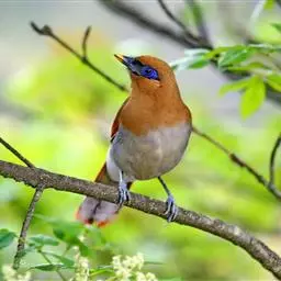 棕脸鹟莺:体长10厘米,是一种色彩亮丽而有特色的莺鸟。头栗色,具黑色侧冠纹。上体绿,腰黄色。下体白,…