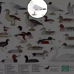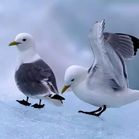 灰翅鸥,夏羽头、颈、腰、尾白色;肩、背和翅上覆羽鸽灰色。冬羽和夏羽相似,但头和颈具淡褐色纵纹,有时…