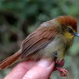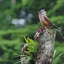 褐头凤鹛小型鸟类,体长12~13厘米。头顶有可竖立的红褐色羽冠,头侧、枕、颊、喉和下体白色,…