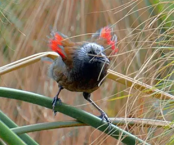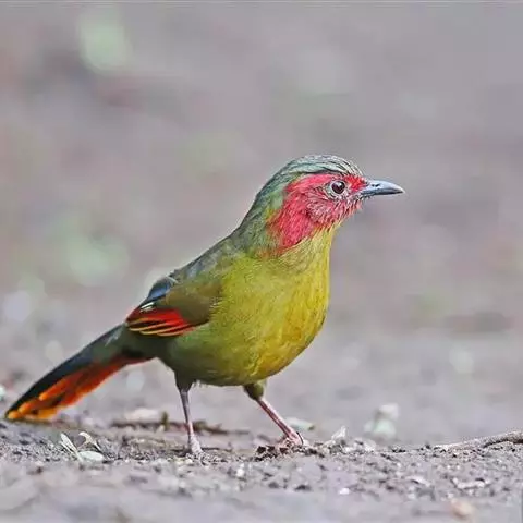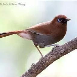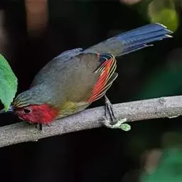 红翅薮鹛是噪眉科、薮鹛属中型鸟类,体长21-24厘米。头顶灰褐色,头侧和颈侧赤红色,上体橄榄褐色,…