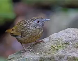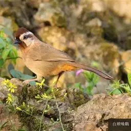 斑背噪鹛是噪眉科、噪鹛属中型鸟类,体长24-28厘米。额至头顶多为栗褐色,眼先、眼周和眼后纹均白色,…