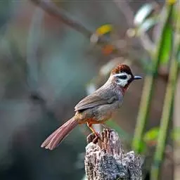 白颊噪鹛是雀形目噪鹛科噪鹛属鸟类,又称土画眉、小画眉、小噪鹃。成鸟额至头顶栗褐色,…