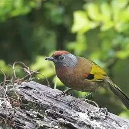 灰翅噪鹛中型鸟类,体长21~25厘米。额黑色,头顶黑或灰色,眼先、脸白色。上体橄榄褐至棕褐色,…