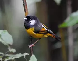 喜结小群,性胆怯。 主要以昆虫和植物性食物为食。繁殖期5-7月,分布于中国西南部的四川、云南、广西等地。