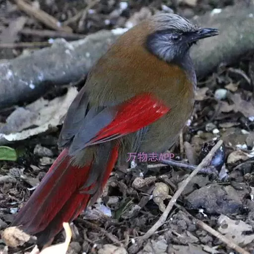 丽色噪鹛(学名:Garrulax formosus formosus)是红翅噪鹛的指名亚种。中型鸟类,体长23-28厘米。头顶灰橄榄褐色具粗著的黑色纵纹,头侧、颏、喉黑色,耳羽灰白色具黑色纵纹。背和胸、腹棕褐色,两翅具一大的鲜红色斑,尾亦为鲜红色。特征极明显,野外不难识别。 相似种赤尾噪鹛头顶至后颈红棕色,耳羽灰色无黑色纵纹,胸、腹暗灰色。栖息于茂密的常绿林,次生林及竹林的地面或近地面处。