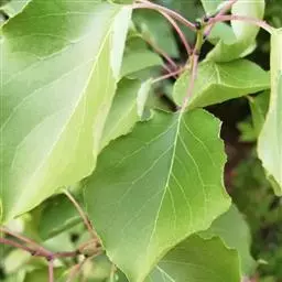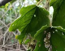 叶片卵状椭圆形或卵形,长7-12厘米,宽4-6.5厘米,先端长尖,基部圆形或近心形,稀宽楔形,边缘有刺芒锯齿。微向内合拢,上下两面无毛或嫩时有褐色绵毛;叶柄长3-4.5厘米,嫩时被绒毛,不久脱落;托叶膜质,线状披针形,长1-1.5厘米,先端渐尖,全缘,边缘具有长柔毛,早落。
