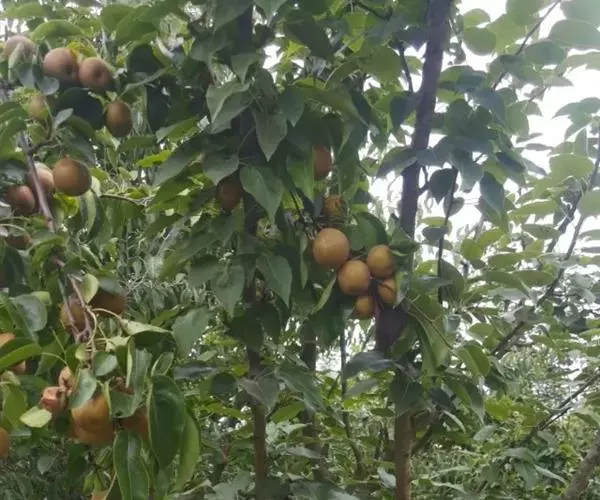 沙梨花时满树洁白,夏秋硕果累累,可作庭园观赏,昆明呈贡区产宝珠梨,花果俱美。