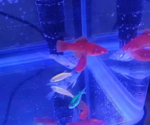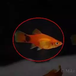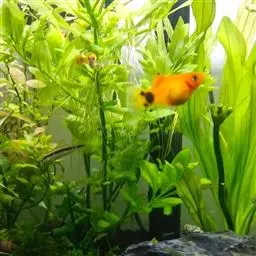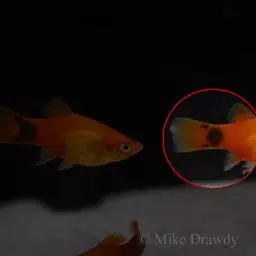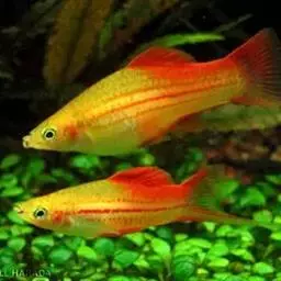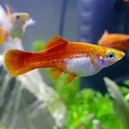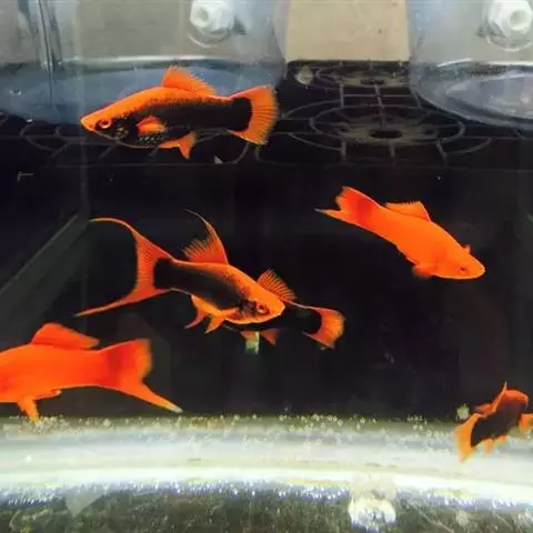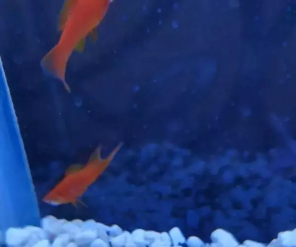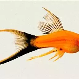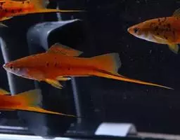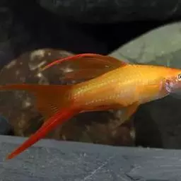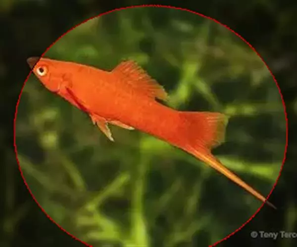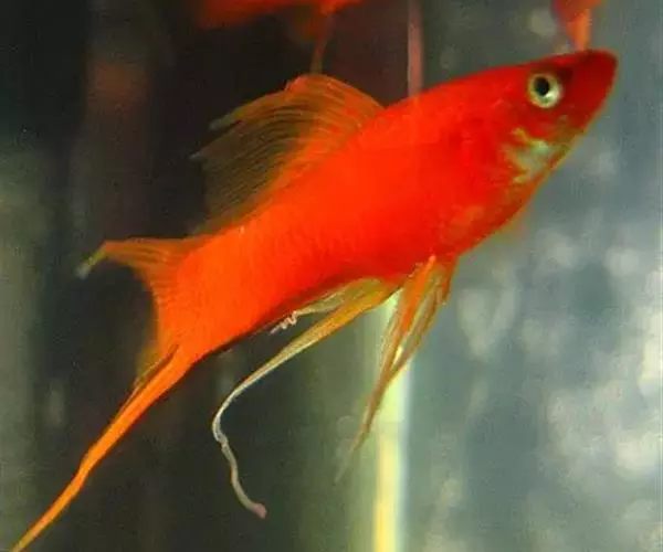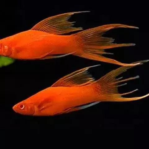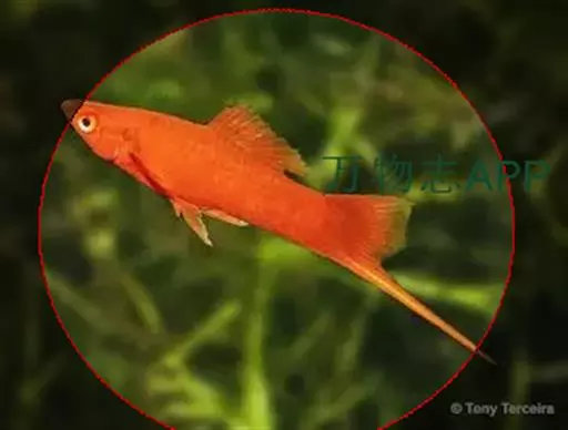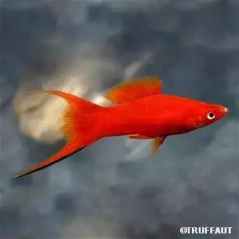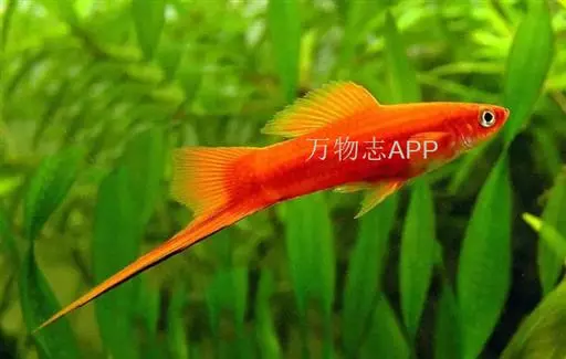 公的红箭鱼发育成熟后鱼尾会长有剑,母鱼的鱼尾则是扇形的