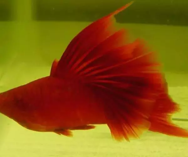 红剑是所有剑尾鱼中最受到国人重视的,刚刚传入中国时,红剑是橘红色的,身体上依稀可见它祖先留给它的三条暗色横纹,眼睛是黑的,雄性尾剑下面有一条黑线。这个特征在欧洲和美国的红剑身上几乎没变过,至今仍然如此。但中国人希望它更红,首先通过定向培育,我们去掉了红剑尾剑上的黑线,然后又将它们的眼珠变红了,最后白眼珠也红了。还是不够,于是继续定向加深它们的红色,终于在1990年代,一种被称为朱砂红剑品种诞生了。那是中国特有的朱砂色,而且沉重有层次,如同在鱼的身上油了大漆。这一点甚至让摄影师很难在这种身上精确对焦。