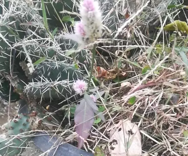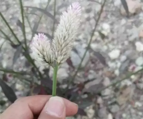 花多数,密生,在茎端或枝端成单一、无分枝的塔状或圆柱状穗状花序,长3-10厘米;苞片及小苞片披针形,长3-4毫米, 白色,光亮,顶端渐尖,延长成细芒,具1中脉,在背部隆起;花被片矩圆状披针形,长6-10毫米,初为白色顶端带红色,或全部粉红色,后成白色,顶端渐尖,具1中脉,在背面凸起;花丝长5-6毫米,分离部分长约2.5-3毫米,花药紫色;子房有短柄,花柱紫色,长3-5毫米。胞果卵形,长3-3.5毫米,包裹在宿存花被片内。种子凸透镜状肾形,直径约1.5毫米。花期5-8月,果期6-10月。