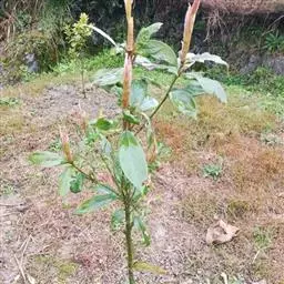 采用两年生苗,苗高20厘米,地径大于0.5厘米。用裸根苗造林,种植时间选在2月份前后,苗木尚未萌动时造林,选择阴雨天定植。前一年年底之前应完成林地清理、整地和挖穴工作。采取全面清理、穴垦整地方式,穴规格为70厘米×40厘米×30厘米,株行距为2米×2米。苗木放入预先挖好的穴中扶正,使根系舒展伸直,覆土后将苗稍稍提起,防止窝根,然后分层回土,踩实,再盖上一层松土。定植之前回土施基肥,南方土壤普遍缺磷,施肥应以磷肥为主。回土时先回表土,回满1/2时提苗一次,让根系舒展,最后让回满土成馒头状,以防积水。