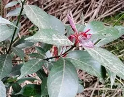 乔木。枝褐色,散布纵裂的唇形皮孔,在当年生和一、二年生枝的基部遗留有顶芽鳞片数轮的疤痕,疤痕高3-4毫米。叶常聚生小枝枝梢,倒披针形,长6.5-13厘米,宽2-3.6厘米,先端尾状渐尖,尖头常呈镰状,基部渐狭,革质或薄革质,梢头的叶干时有时呈黄绿色,叶下面初时有贴伏小柔毛,中脉在上面稍凹下,下面突起,侧脉每边10-12条,小脉纤细,在两面上构成细密的蜂巢状浅穴;叶柄纤细,长8-15毫米。