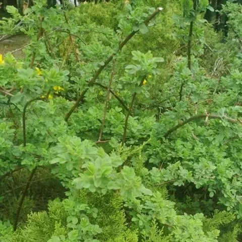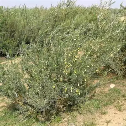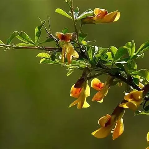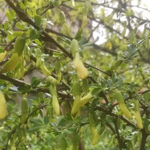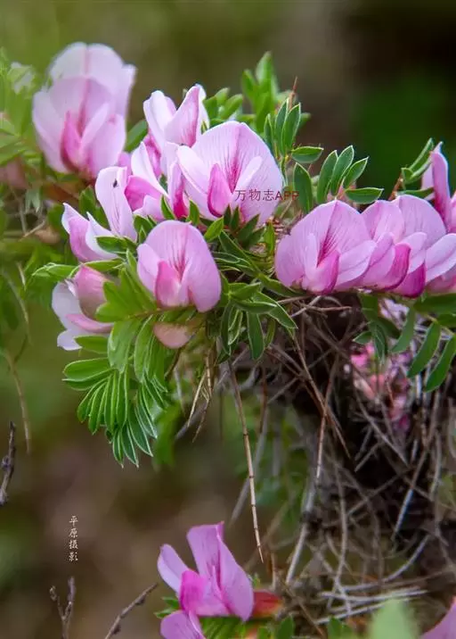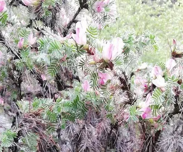 鬼箭锦鸡儿又名:藏锦鸡儿。多刺矮灌木,高l-2m。基部分枝,茎多刺,树皮深灰色至黑色。偶数羽状复叶,小叶4-6对;叶轴宿存并硬化成刺,长5-7cm;叶密集于枝的上部,小叶长椭圆形至线状长椭圆形,长7-24mm,宽1.5-7mm,先端圆或急尖,有针尖,两面疏生柔毛,网脉不明显;托叶与叶柄基部贴生,不硬化成刺。花单生,长2.5-3.5cm,花梗极短,基部有关节;花萼筒状,长l4-17mm,密生长柔毛,基部偏斜,萼齿5,披针形;长为萼筒的1/2;花冠蝶形,淡红色或近白色;子房长椭圆形,密生长柔毛。荚果长椭圆形,长约3cm,宽约7mm,密生丝状长柔毛。花期5-7月,果期7-8月。