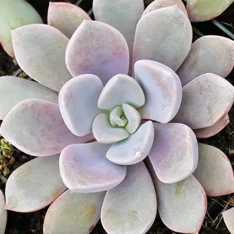 大和锦是景天科拟石莲花属的多肉植物。肉质叶排成紧密的莲座状,广卵形至散三角卵形,背面突起呈龙骨状,…