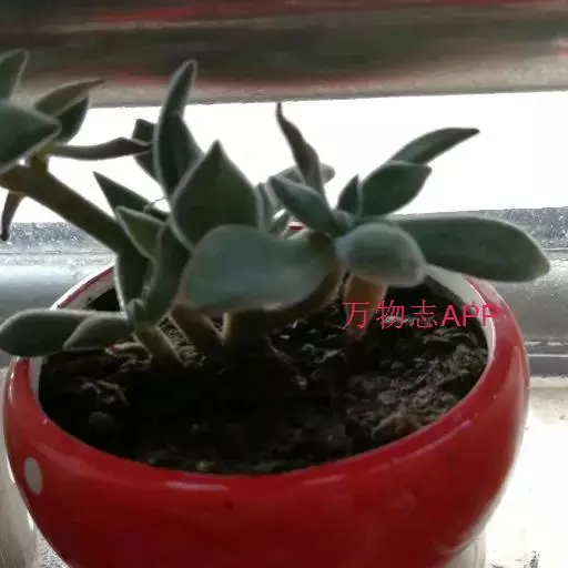 多年生小灌木状多浆植物,灰绿色卵状倒披针形肥厚肉质叶轮状互生,全缘,椭圆尖头, 锦晃星 长3cm-4cm,宽2cm~2.5cm,厚约1cm,玲凉季节阳光下,叶端及上缘呈红色。棕褐色茎细棒状,0.8cm~1cm,下端横卧,分枝群生,高15cm~20cm。晚秋至初春由枝头抽出花梗,开鲜红色5瓣花,小花钟形,半开状,花长1-5cm,穗状花序。
