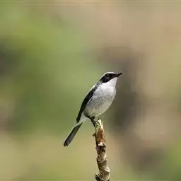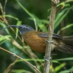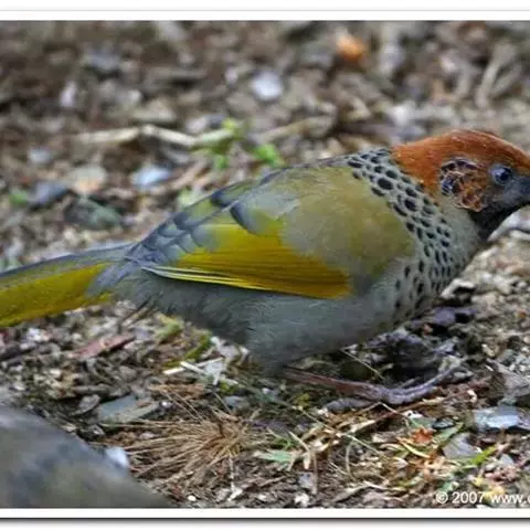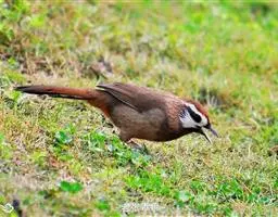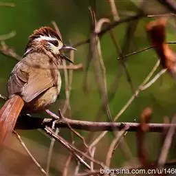 黑顶噪鹛:中型鸟类,体长24-26厘米。前额、脸、颏、喉黑色,头顶黑褐沾棕或深棕橄榄褐色,…