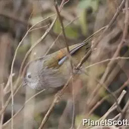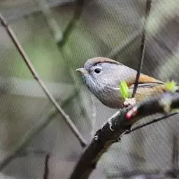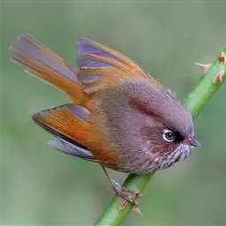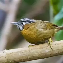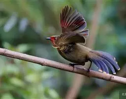 纹喉凤鹛:小型鸟类,体长13-16厘米。头顶和羽冠暗褐色或褐灰色,上体橄榄褐色,飞羽黑褐色,…