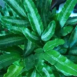 剑叶凤尾蕨 孢子繁殖:剑叶凤尾蕨的孢子繁殖比较迅速,也是最简易便捷的方式,选取成熟的叶片,将其叶片边缘成熟的孢子部分剪下来,用毛刷将孢子刷下收集起来。剑叶凤尾蕨孢子萌发力强,一般不需要进行前处理。育苗土壤多用腐殖土、泥炭土、河沙等混合配制而成,常用配方为腐殖土:壤土:河沙=3:1:1的比例混合。以上各原料必需过筛后拌匀,蒸汽灭菌后才能使用。待床土水分渗透后,将孢子粉均匀撒播于床面上,不要覆土,可稍稍淋水,使孢子与土面相接。播后在床面覆盖地膜,保温保湿。光照强度以散射光为宜,切忌暴晒。光照时间每天要在4小时以上,床土温度控制在25℃-30℃,从播种到出叶只需要1个月左右的时间。