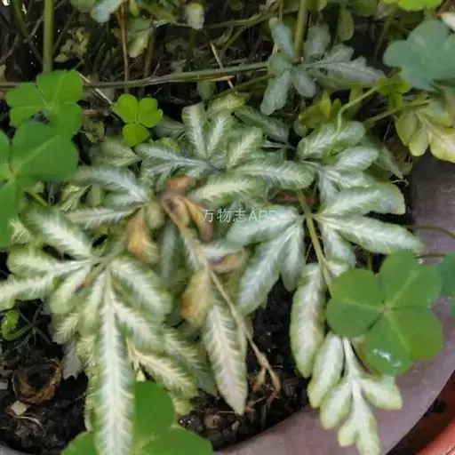 羽片中央沿主脉两侧各有1条纵行的灰白色带。分布于中国海南(崖县、南山岭)。生林下,海拔300米。也产于印度北部、中南半岛及马来半岛。可作为园艺品种。