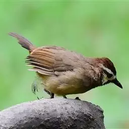 白眉雀鹛是鹟科、雀鹛属的鸟类。头顶暗灰褐色,有粗著白眉纹,眉纹上、下方又有宽阔黑纵纹;上体茶黄棕,…