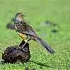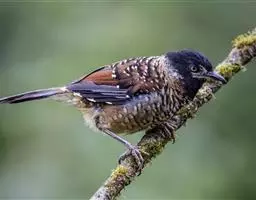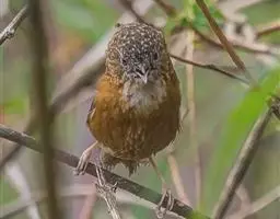 大噪鹛:中型鸟类,体长32-36厘米。额至头顶黑褐色,背栗褐色满杂以白色斑点,…