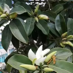 深山含笑是木兰科含笑属常绿大乔木。株高达20米;芽、幼枝、叶下面、苞片均被白粉;叶为革质宽椭圆形,…
