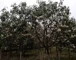 当苗木高生长至8厘米左右时,要结合间苗进行移栽,幼苗保留量为35株/平方米,多余的间苗也可以另行移栽。间苗和移栽幼苗前后都必须浇透水,防止幼苗根脆弱影响幼苗成活。6-8月每隔20天左右施肥1次,施肥量为30-75千克/公顷,施肥可以结合除草同时进行。雨季一定要注意排涝,连续干旱要对苗床进行漫灌,确保苗木正常生长。8月上旬停止施肥,促进苗木木质化便于苗木正常过冬。翌年春季即可将苗木进行移栽定植。