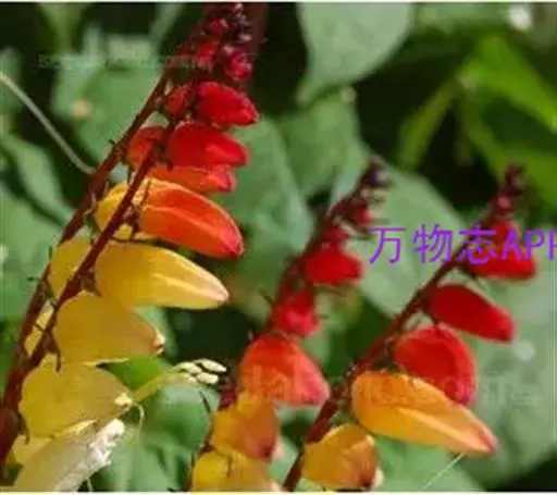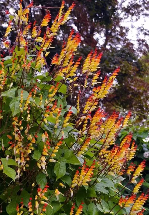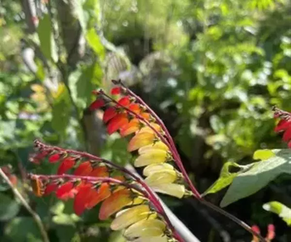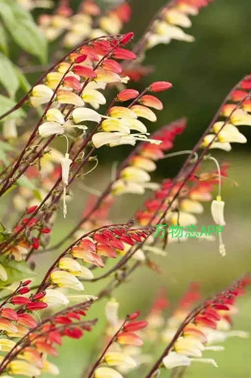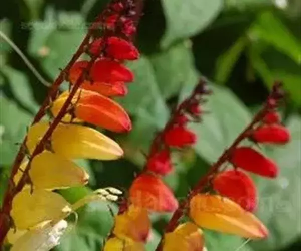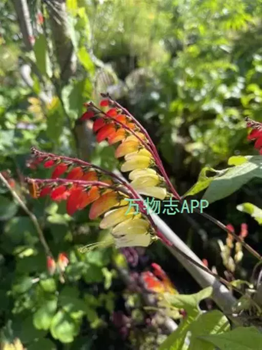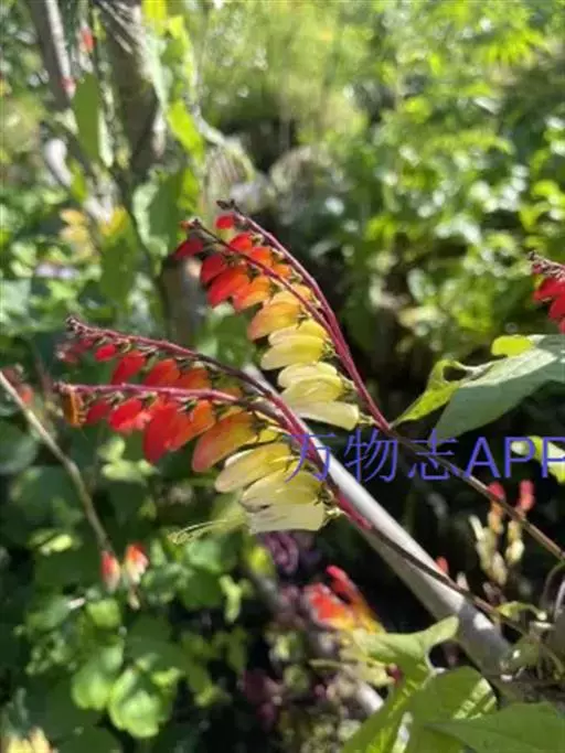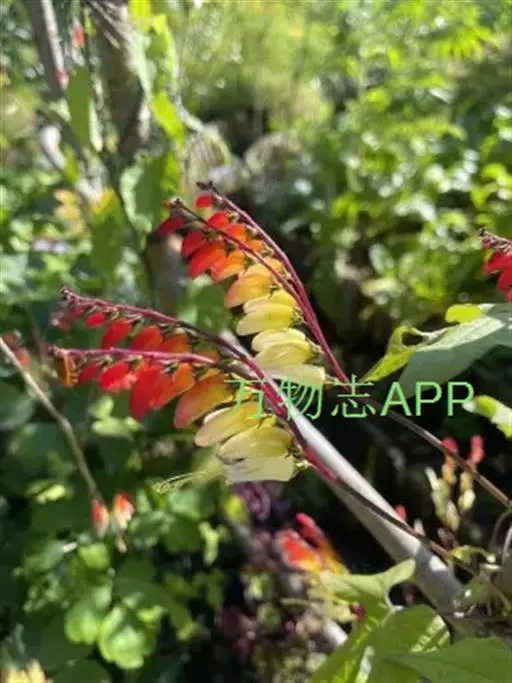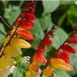 金鱼花(学名:Mina lobata Cerv.)是旋花科,金鱼花属多年生向左旋缠绕草本植物,茎无毛,叶片3裂或全缘。聚伞花序,长达35cm,花偏向一侧;花冠管状,具棱略弯,口部呈坛状,初红色,渐转为淡黄色至白色;叶面浓绿色,多于春季开花,花期20余天。