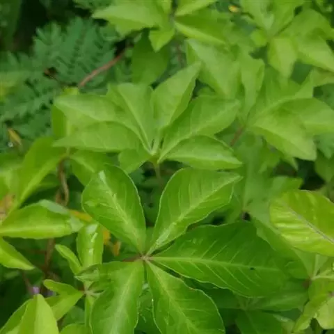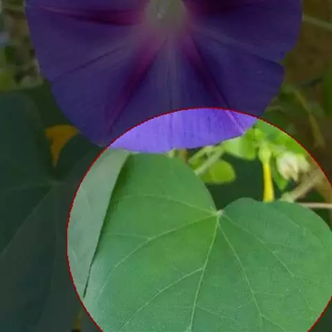 叶宽卵形,长近于宽,长约6-15厘米,基部深心形,全缘或大多3裂,裂片渐尖,中裂片下部收缩,侧裂片具粗齿或再分裂,叶面深绿色,背面苍白,无毛;叶柄长3-10厘米。
