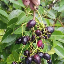 轮叶蒲桃 果实呈紫黑色时进行采摘,1千克种子3400粒左右,采后堆沤软化果皮,上覆盖稻草。2-4周后,用流水淘洗漂去果肉,分离出潮湿的种子,然后进行阴处晾干,沙藏到第二年春3月下旬播种。选壤土pH值5-6,在细耕土地后,每亩撒施有机肥500千克后,做苗床宽1.1米,高20厘米,长度根据田块大小而定,平整苗床土地。要求播种均匀,种籽播后及时覆盖细黄心土,覆盖厚度约1-2厘米,再盖上稻草或郎衣(如搭小弓棚用塑料薄膜覆盖可提早出苗,苗木相对整齐),5月中旬出苗后及时揭开。针对苗木的生长状况,根据薄肥勤施的原则,一般用速溶复合肥2‰-3‰溶液进行喷洒,时间7-10天1次,也可以结合根外施肥,同时进行病虫害的防治与管理工作。为抑制苗木徒长,促进苗木木质化,切断主根促进侧根生长,以提高苗木移植成活率,时间应在秋季为宜。