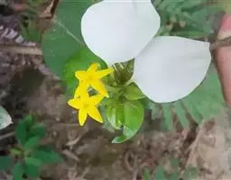 白纸扇是茜草科玉叶金花属,藤状攀援灌木,枝和小枝褐色,叶薄纸质,披针状椭圆形,两面有稀疏柔毛。花序顶生,聚伞花序,花黄色。花期5~1 0月。有些花的一枚萼片扩大成叶状,白色。