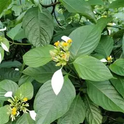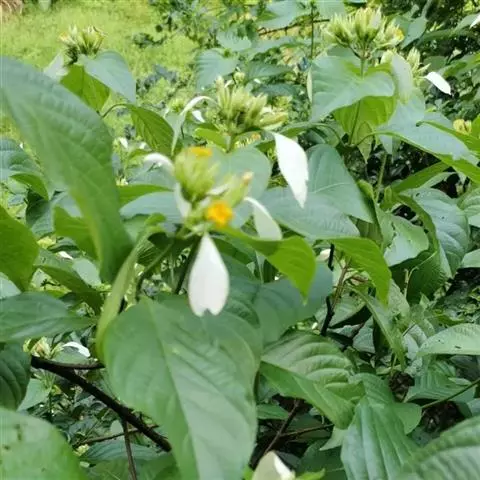 粉纸扇,茜草科玉叶金花属植物,半常绿灌木,株高1~3 m。叶对生,长椭圆形,顶端浙尖,基部楔形,全缘。…