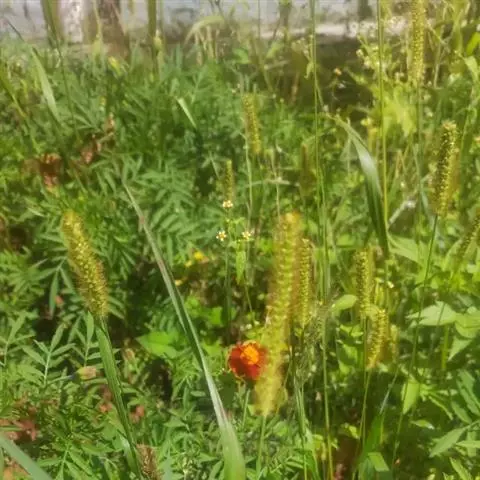金色狗尾草(学名:Setaria glauca (L.) Beauv.)是一年生草本植物;单生或丛生。秆高可达90厘米,光滑无毛,叶鞘下部扁压具脊,上部圆形,光滑无毛,叶片线状披针形或狭披针形,上面粗糙,下面光滑,圆锥花序紧密呈圆柱状或狭圆锥状,直立,主轴具短细柔毛,刚毛金黄色或稍带褐色,粗糙,第一颖宽卵形或卵形,第二颖宽卵形,第一外稃与小穗等长或微短,第二小花两性,外稃革质,6-10月开花结果。