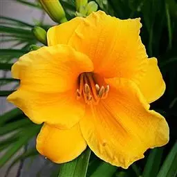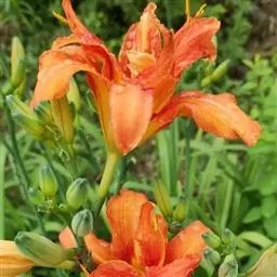 金娃娃萱草:是萱草的人工栽培的园艺品种。地下具根状茎和肉质肥大的纺锤状块根。叶基生,条形,排成两列,…