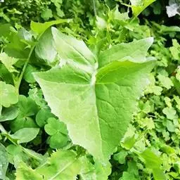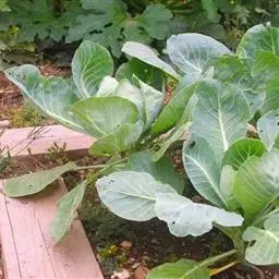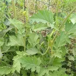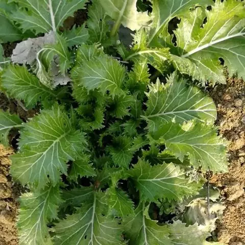 半塌地型植株不完全塌地,代表品种有南京瓢菜,叶片半直立,叶圆形、墨绿色,叶有皱褶,叶脉细稀,叶全缘,叶柄扁平微凹,白色,叶尖外翻,有菊花心之称。