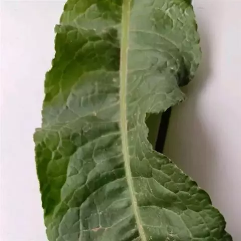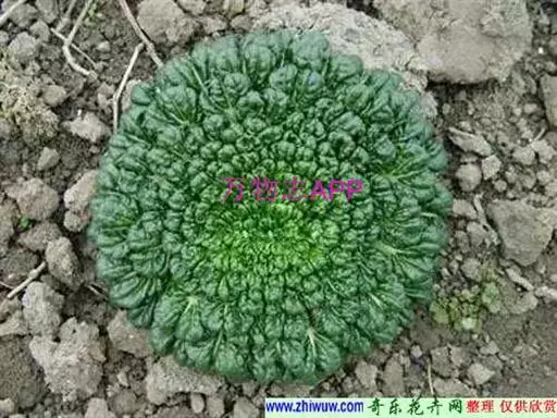 二年生或栽培成一年生草本,高30-40厘米,全株无毛,或基生叶下面偶有极疏生刺毛;根粗大,顶端有短根颈;茎丛生,上部有分枝。基生叶莲座状、圆卵形或倒卵形,长10-20厘米,墨绿色,有光泽,不裂或基部有1-2对不显著裂片,显著皱缩,全缘或有疏生圆齿,中脉宽,有纵条纹,侧脉扇形;叶柄白色,宽8-20毫米,稍有边缘,有时具小裂片;上部叶近圆形或长圆状卵形,长4-10厘米,全缘,抱茎。