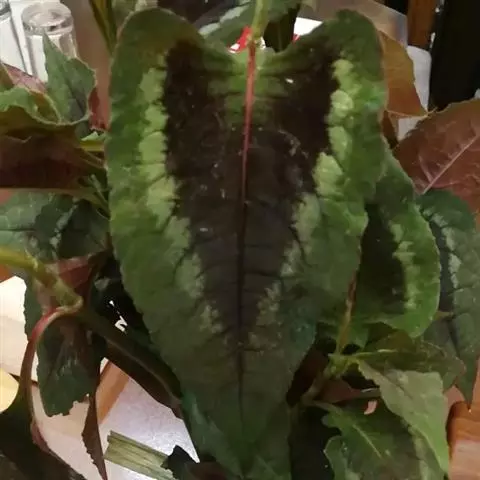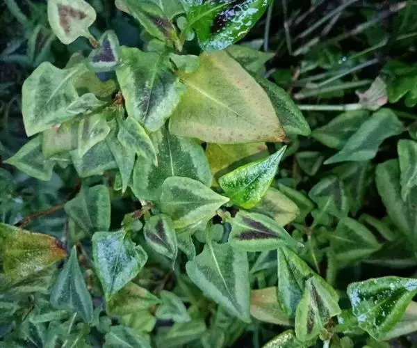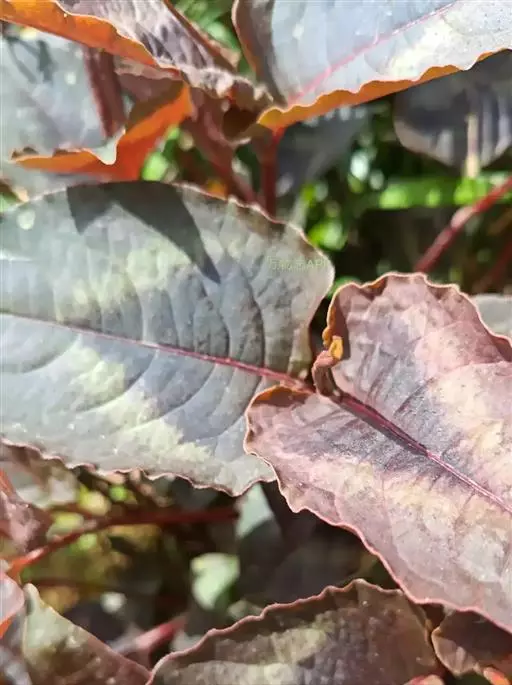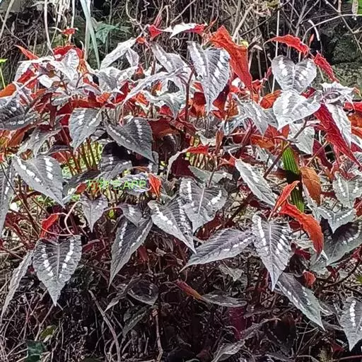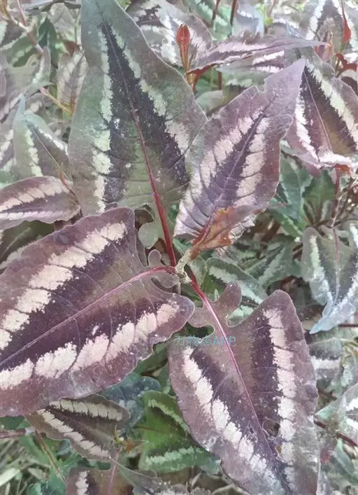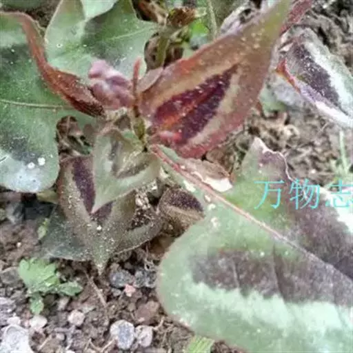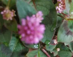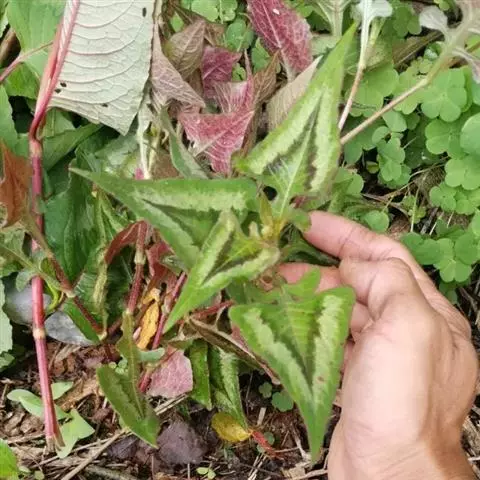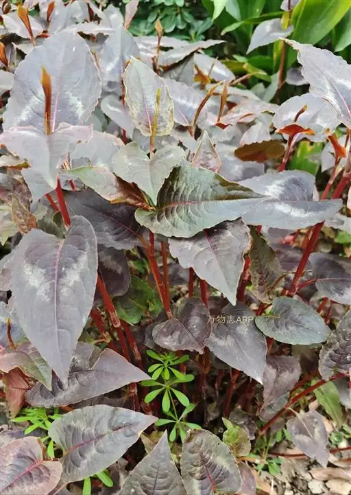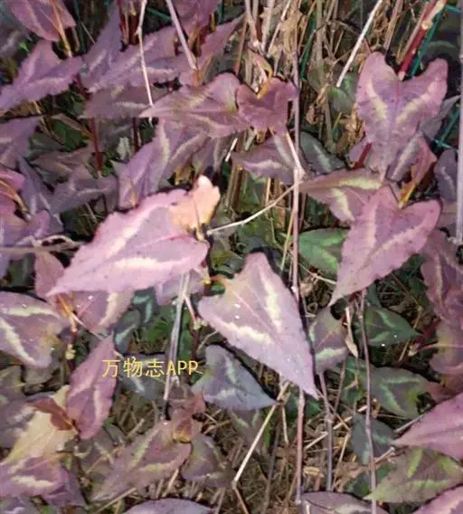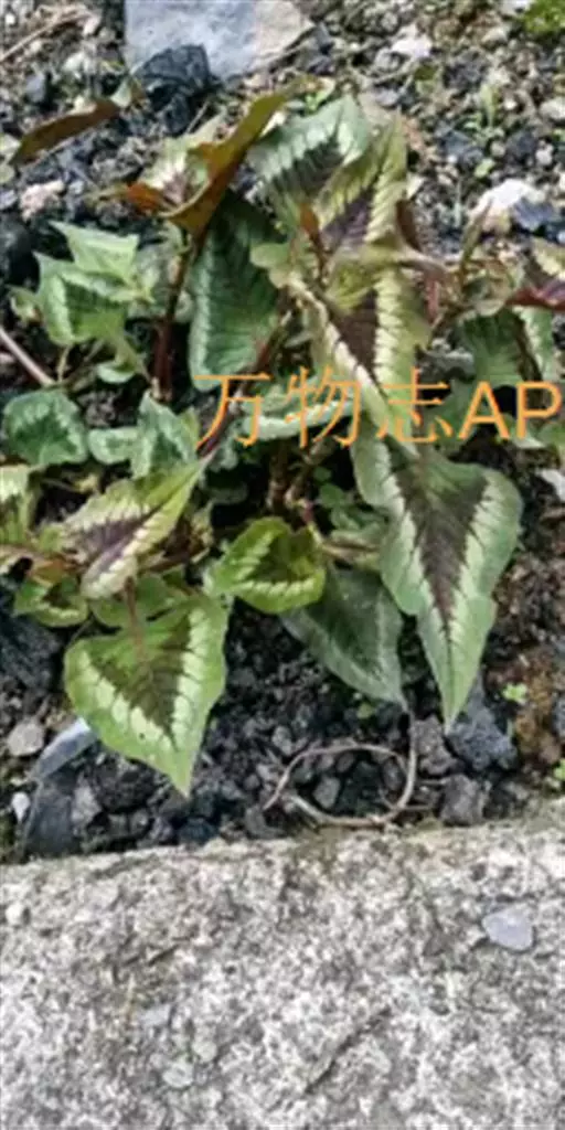 锈红色晕斑,叶缘淡紫红色,茎较纤细,紫色,茎上有节,叶互生,卵状三角形,基部常具2圆耳,宛如箭镞,上面有紫黑斑纹,叶柄处有筒状的膜质托叶鞘,头状花序,常数个生于茎顶,上面开粉红色或白色小花。花期为7-8月,花后结黑色卵圆形瘦果。