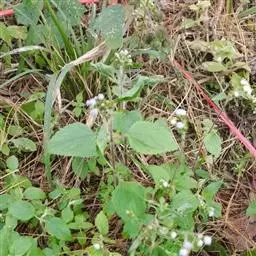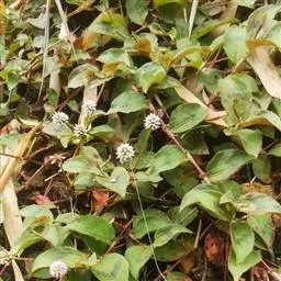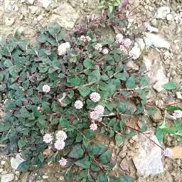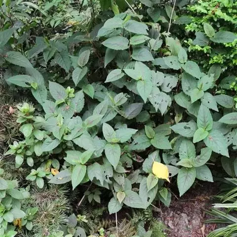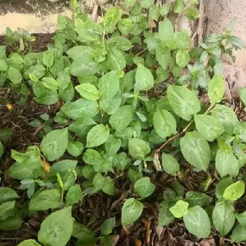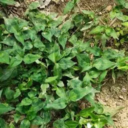 赤胫散,又名散血草。一年生或多年生草本植物;高25~70厘米;根状茎细长;茎直立或倾斜,分枝或不分枝,有纵沟,有稀疏柔毛或近无毛。叶片三角状卵形,腰部内陷,长4~10厘米,宽2.5~5厘米,先端渐尖,基部截形,稍下延至叶柄,叶耳长圆形或半圆形,先端圆钝,长0.5~1厘米,有的近于无叶耳,两面有稀疏柔毛或无毛,先端截形,有短缘毛或无。头状花序,直径0.5~1厘米,有数朵至10余朵花,由数个至多个花序排列成聚伞状花序;苞片卵形,内有1朵花,花柄短或无柄;花萼白色或粉红色,5片,长约2毫米;雄蕊8枚,长约1毫米,中部以下与花萼连合,花药黄色;花柱三个,中部以下连合,柱头头状,与花萼等长或稍露出。瘦果球状三棱形,直径约2毫米,先端稍尖,褐色,表面有点状突起,包在宿存的花萼内。花期6~7月,果期7~9月。