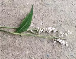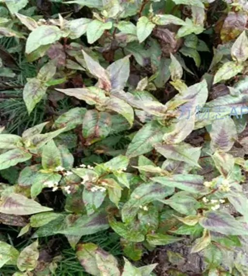 性状鉴别:根茎纤细,红褐色,节部肿大,有众多须根。茎圆柱形,细弱,稍扁,上部略有分枝,淡绿色或略带红褐色,有毛或近无毛;断面中空。叶卵形、长卵形或三角状卵形,长5-8cm,宽3-5cm,先端渐尖,基部近截形或微心形,并下延至叶柄,且于两侧常形成向内凹的l-3对圆形裂片,上面有三角形暗紫色斑纹;托叶鞘筒状,膜质,褐色。花序顶生,由数个头状花序组成;花被白色或粉红色。气微,味微涩。