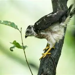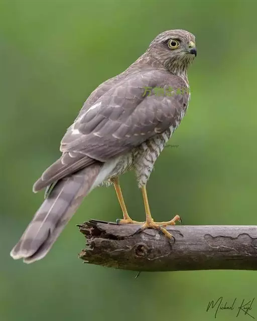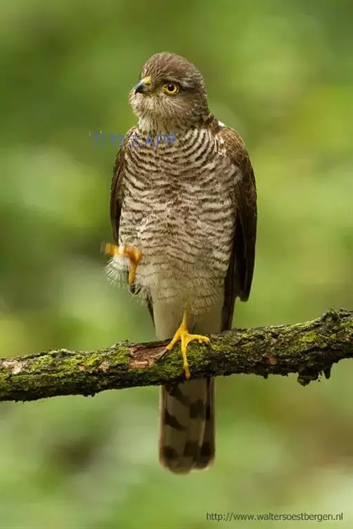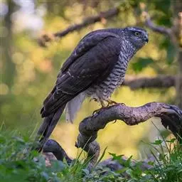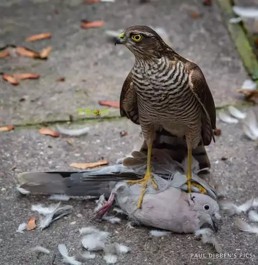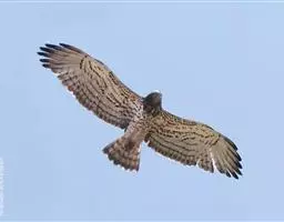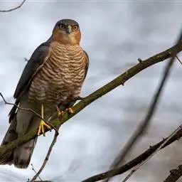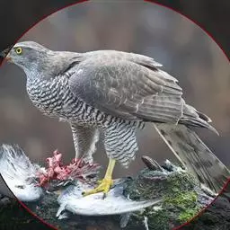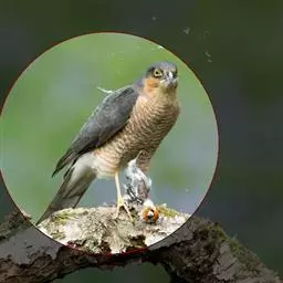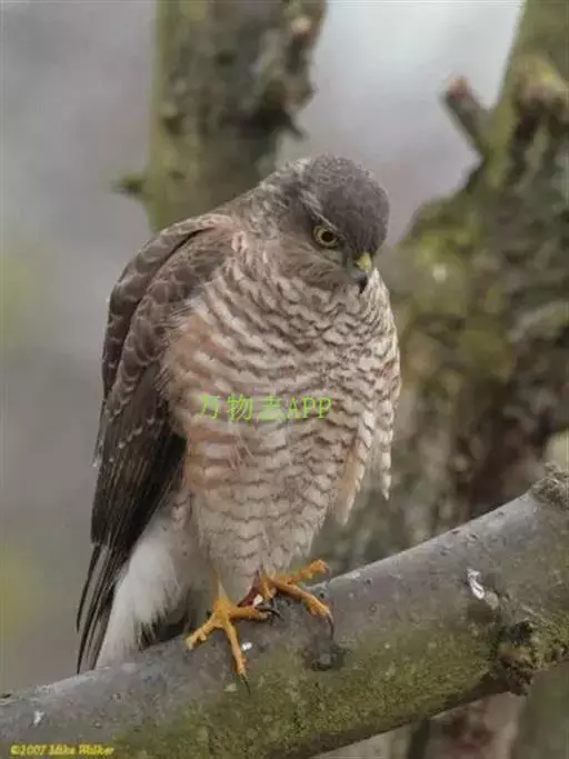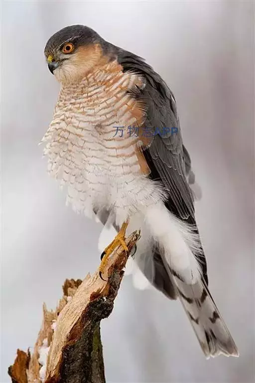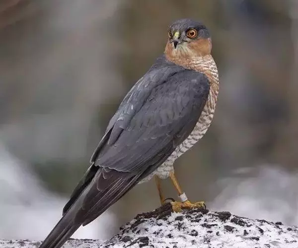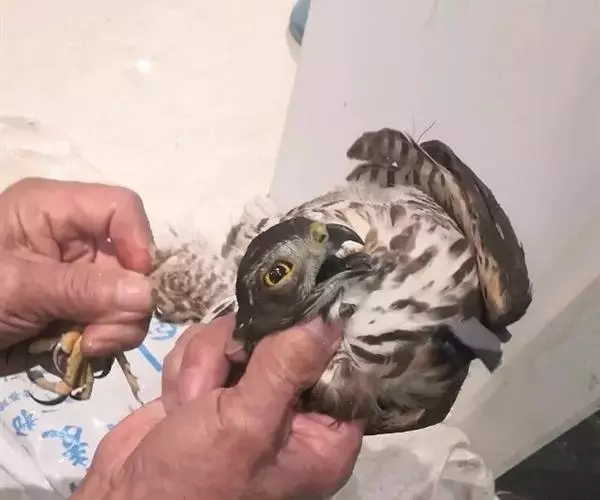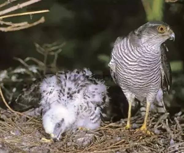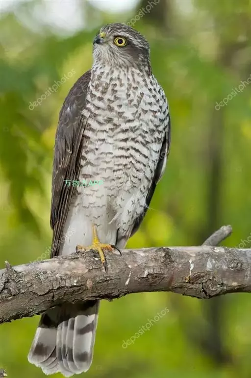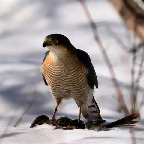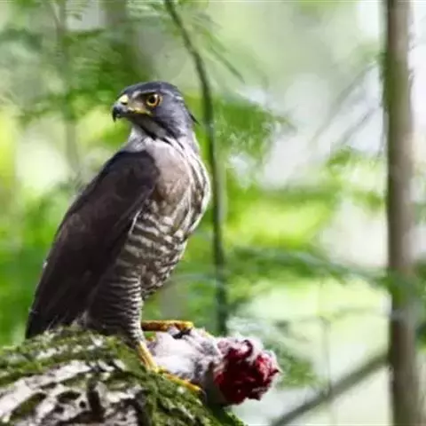 雀鹰(学名:Accipiter nisus)属小型猛禽,体长30-41厘米。雌较雄略大,翅阔而圆,尾较长。雄鸟上体暗灰色,雌鸟灰褐色,头后杂有少许白色。下体白色或淡灰白色,雄鸟具细密的红褐色横斑,雌鸟具褐色横斑。尾具4-5道黑褐色横斑,飞翔时翼后缘略为突出,翼下飞羽具数道黑褐色横带,通常快速鼓动两翅飞一阵后接着又滑翔一会。栖息于针叶林、混交林、阔叶林等山地森林和林缘地带。日出性。常单独生活。或飞翔于空中,或栖于树上和电柱上。以雀形目小鸟、昆虫和鼠类为食,也捕食鸽形目鸟类和榛鸡等小的鸡形目鸟类,有时亦捕食野兔、蛇、昆虫幼虫。分布于欧亚大陆,往南到非洲西北部,往东到伊朗、印度和中国及日本。越冬在地中海、阿拉伯、印度、缅甸、泰国及东南亚国家。