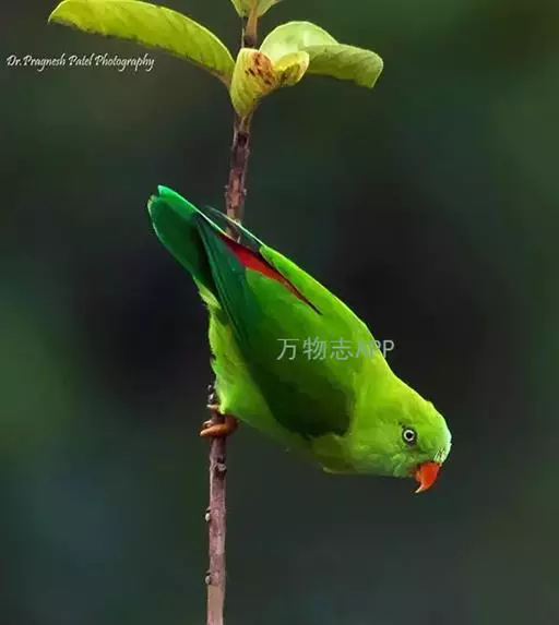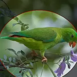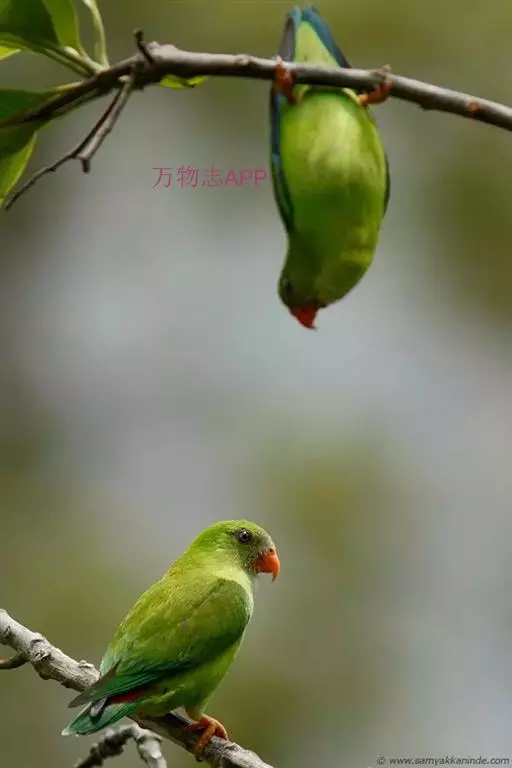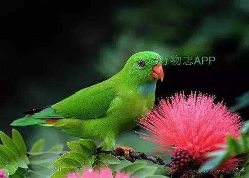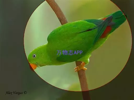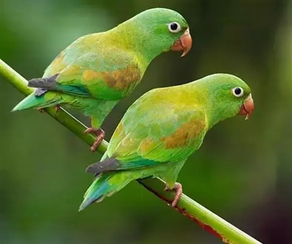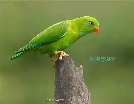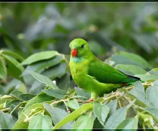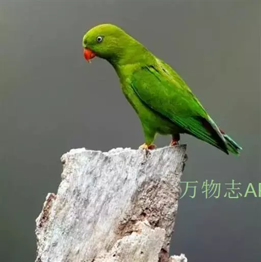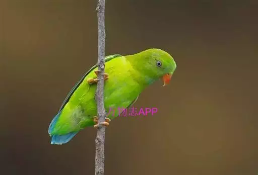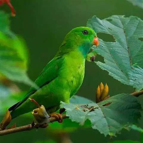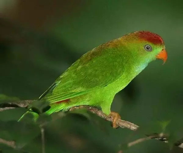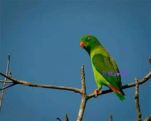 短尾鹦鹉(学名:Loriculus vernalis)是典型的攀禽,体形小,翅长在90毫米左右;尾较翅短;嘴较细削,其厚度不及嘴峰长度;腰下有朱红色块斑;雄鸟喉部有蓝色块斑。鸟喙强劲有力,喙钩曲,上颌具有可活动关节,喙基部具有腊膜。肌肉质舌厚。脚短,强劲有力,对趾型,两趾向前两趾向后,适合抓握和攀援生活。体羽主要是绿色,红嘴红腰,翼下为青绿色带绿色翼衬。