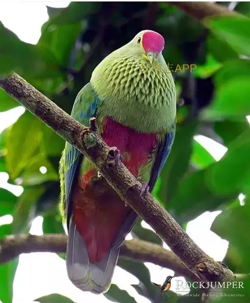 雄性成鸟 整体大致绿色,下体显著较淡,头部较辉亮;喉部有一蓝色块斑;腰和尾上覆羽红色;翅底面蓝绿色;尾羽上绿下蓝。雌性成鸟 整体略较苍暗,喉部蓝斑不显或缺如。
